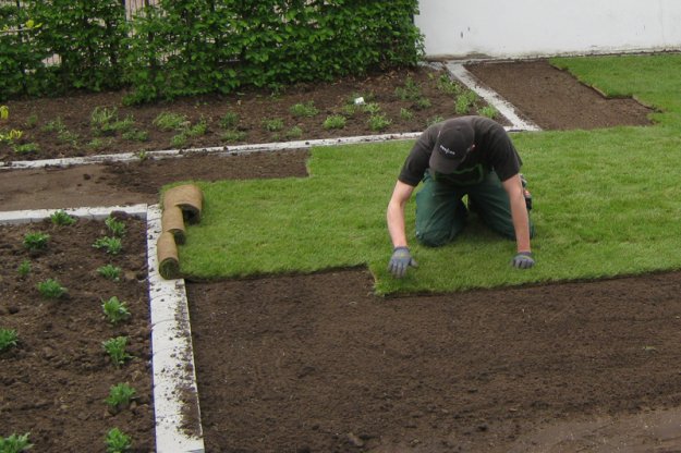 Der Rasen wird auf gutem Mutterboden ausgesät und wächst dort unter ständiger Beobachtung und regelmäßigen Mähen mittels großer Maschinen schnell heran.