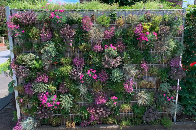 Unsere bepflanzten Gabionen sind Bienenparadiese, Kräutergarten und ein echter Hingucker. Sie bieten einen sofortigen Sicht-, Schall- und Begrenzungsschutz und eignen sich ideal zur Begrünung von Wänden, als Raumtrenner sowie als Nutz- und Naschgabione.